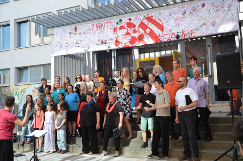... so tönte MonteChori mit Ansatzweise und dem Mittelstufenchor nach „Aux Champs-Elysée" anlässlich der Wegebenennung nach der Namensgeberin unserer Einrichtungen: Maria Montessori, einem besonderen Höhepunkt unseres 30jährigen Schuljubiläums am 13. Juni 2025.