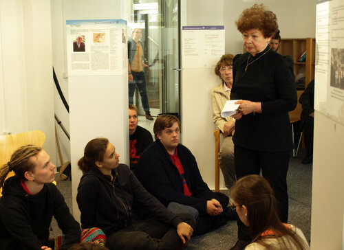 Die Ausstellung berichtet in Interview-Form auf zwölf Acryl-Leuchtsäulen über die Migrationshintergründe der ehemals jüdischen Sowjetbürger, die nie ein gleichberechtigtes Leben führen durften. Elf Zeitzeugen waren trotz ihres hohen Alters anwesend und kamen mit den Gymnasiasten zu den Beweggründen ihrer Flucht aus der Heimat ins Gespräch.