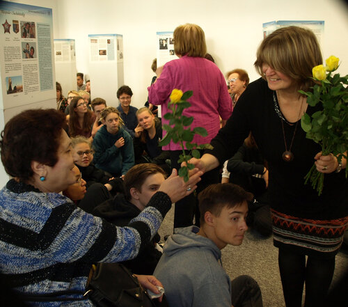 Am Montag wurde in unserer Aula im beruflichen Gymnasium ein Zeitzeugen-Projekt mit jüdischen Migranten aus den Ländern der ehemaligen Sowjetunion eröffnet, die nach der politischen Wende als so genannte Kontingentflüchtlinge in Dresden eine neue Heimat fanden.