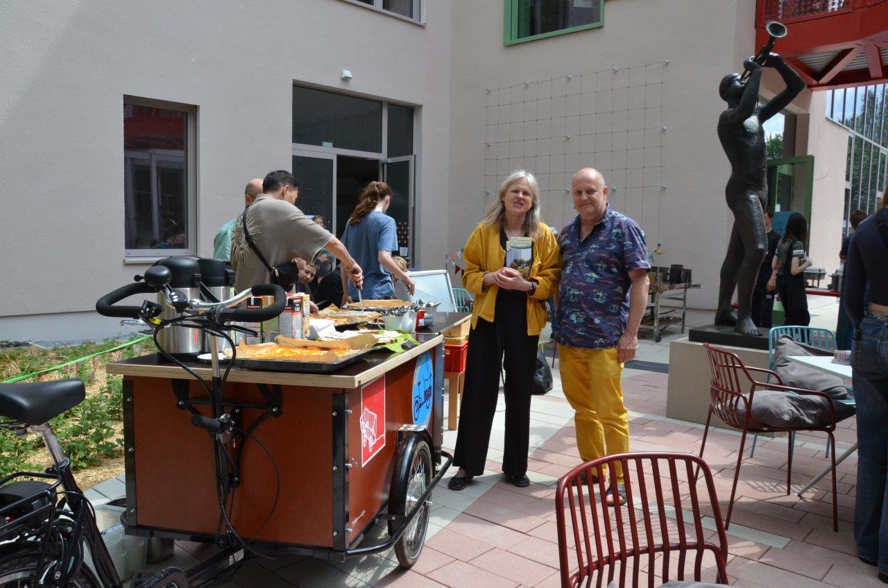 Der Bürgerverein In Gruna leben e.V. und SIGUS e.V. hatten eine Backaktion gestartet, sodass die persönlich eingeladenen Nachbarinnen und Nachbarn bei Kaffee und Kuchen vom Lastenrad, dem "Café all inklusive" bewirtet werden konnten. Sie freuen sich sehr auf die Wiedereröffnung des Weges, die noch im Juni stattfinden soll.